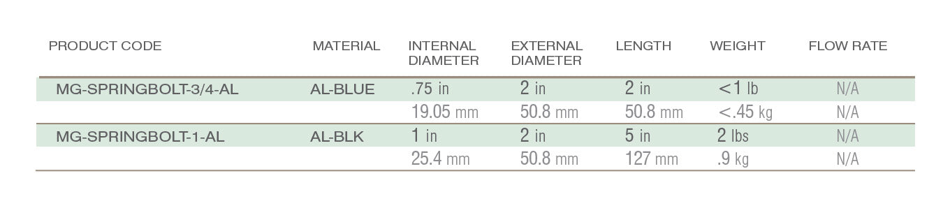 Easy to use, portable and versatile, Springbolt comes in two sizes: 3/4″ (small blue) and 1″ diameter (large black unit). Springbolt softens water without the use of salts for your showers, faucets, water heaters, dishwashers, laundry, water spigots, garden hoses and sprinklers.